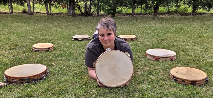 Dedico la mayoría de mi tiempo libre al estudio e interpretación del repertorio vocal de tradición oral, sobre todo a la música y al repertorio de pandereta, un instrumento que histórica y mundialmente está ligado a las mujeres y que tiene una técnica tan compleja como fascinante.
